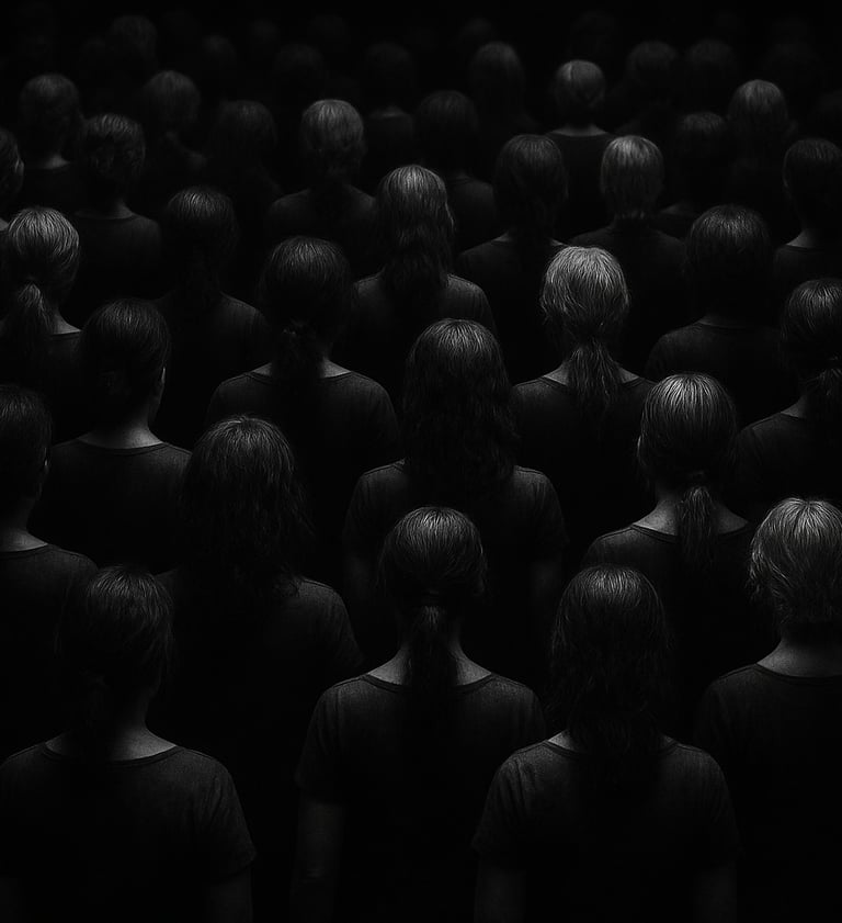 At moments, powerful choral voices rise — but only as whispers, as if the dead were singing loudly from another realm.